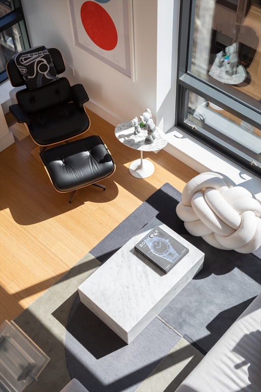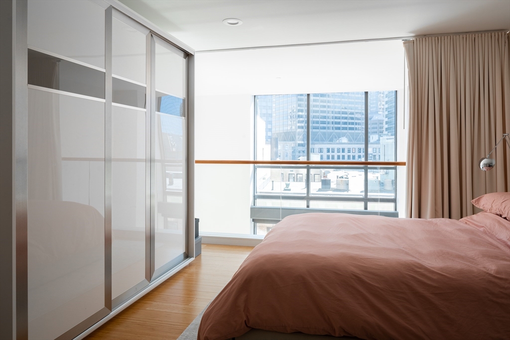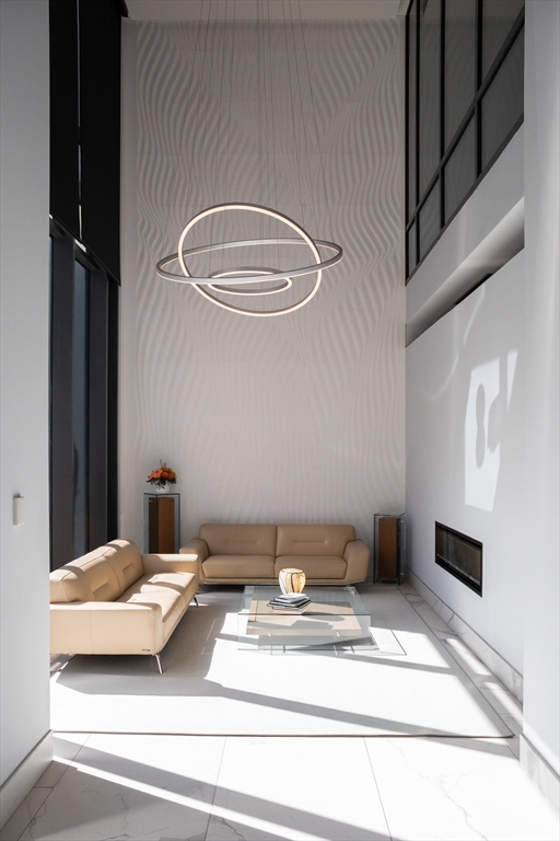Introducing Residence 910 at 45 Province Street, a double-height, loft-style home with soaring ceilings a dramatic wall of glass and extensive upgrades throughout. Eastern and southern exposures fill the space with natural light, complemented by custom electric shades for added comfort and privacy. The open-concept layout offers flexibility for both everyday living and entertaining, featuring a gourmet kitchen with top-of-the-line appliances and gas cooking. Custom lighting and thoughtful finishes create a warm and inviting atmosphere throughout. The primary suite includes extensive custom built-ins with additional closet storage and an oversized linen closet. Residents enjoy full-service amenities including 24-hour concierge, valet garage parking, a fireside lounge with catering kitchen, media room, fitness center, seasonal heated pool, and a roof terrace with panoramic city and water views.