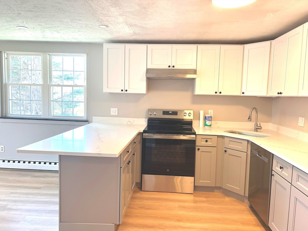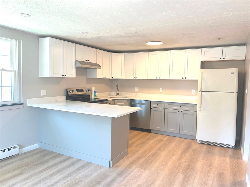 Fully renovated 3rd floor corner unit with open floor plan at Meenmore! This unit features a brand new kitchen with white shaker cabinet and breakfast bar open to the living room, new windows, laminate flooring, king sized master bedroom, new bathroom vanity, fresh painting and a extra private storage in attic. Ideal location for commuting with easy access to Rt. 2, Rt. 495 and the Littleton Commuter Rail station, local shops and restaurants plus conservation land. Enjoy the summer at the private pool, playground and picnic area in the complex. Low electricity rates through Littleton Electric.